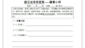 工業化的發展,使得人類的生活有了大幅的進步,但美麗的自然環境卻漸漸消失。我們只有一個地球,當雨林消逝、水源污染、臭氧層破裂後,身在地球上的我們該何去何從呢?讓我們一起來閱讀徵召地球保衛軍,共同來思索這個問題吧!