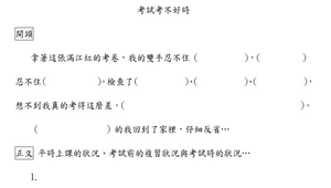 在上課前,老師可以請學生先蒐集受挫卻勇敢面對的名人故事,請他們進行分享,老師也可分享兩至三個勵志故事。開頭,可以用自己拿到悲慘分數時的心情作為開頭,正文可以反省或檢討自己考試前的準備狀態或上課的專心程度,最後引用名人勇於面對挫折的故事,自我勉勵。