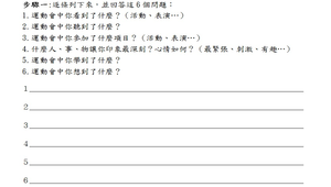 學校一年一度的運動會,小朋友們既興奮又期待,尤其是三年級的小朋友,參加的活動的項目增加了,是一種全新的感受。在活動中除了學習各種運動技巧,還要學習團隊合作,遵守秩序,勝不驕,敗不餒的運動家精神,並能從生活經驗中尋找可供寫作的材料。