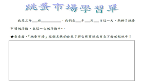 以學校舉辦的跳蚤市場活動,當做學生主要的寫作材料,並指導學生修辭、破題、結尾的方法,融入在寫作過程中。