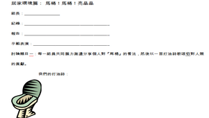 討論題目二:每一組員共同腦力激盪討論如何保持家裡的『馬桶』清潔,並示範如何刷洗馬桶,讓馬桶每天亮晶晶?