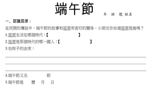 現代的孩子對傳統節慶多半認識不深,許多節慶的習俗,蘊藏著不少前人的智慧與發人省思的意義。本學習單讓孩子上網主動查詢資料,並與家人討論分享,除了讓學生認識端午節的由來之外,更希望透過實踐習俗,跟親人在家過節,培養親子感情。