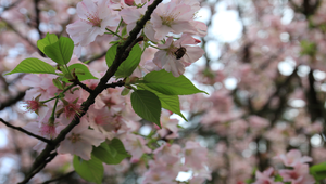 櫻花開花時,吸引蜜蜂前來採食花蜜