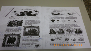 萬聖節的延伸補充。針對時下流行的吸血鬼文學做入門介紹。使用"Dracula"童話繪本,讓學生對西方吸血鬼語言、背景、文化、意義做有層次的探討。進而讓學生能延伸出自我的吸血鬼英文四格漫畫創作。