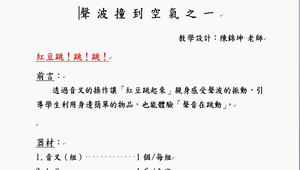 透過音叉的操作讓「紅豆跳起來」親身感受聲波的振動,引導學生利用身邊簡單的物品,也能體驗「聲音在跳動」。