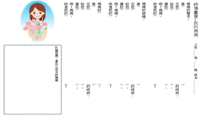 以學生熟悉的母親為題,引導學生進行童詩寫作,並加上圖畫做裝飾,適合作文課或母親節系列活動使用。