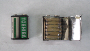 老師上課用的麥克風是方形電池,跟一般圓形的不同。老師說:因為圓形電池的電壓只有1.5伏特,但方形電池的電壓卻有9伏特。到底方形電池內部有什麼機關?