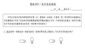 日常生活有許多東西都需要用到電,如:電視機、冷氣機、手電筒…等,那電是如何來讓電器工作呢?首先我們需要讓電與電器間構成通路才可以,藉由實際操作燈泡及電池,並觀察燈泡的亮度,來學習串聯及並聯的觀念。