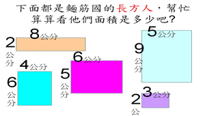 此投影片主要是建立學生的面積概念,讓學生知道如何計算正方形與長方形面積。用於此單元的開始。