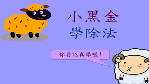 小咩與小虎這系列的投影片本尊,其實是我的兩隻可愛手偶,透過這兩個俏皮的角色,教導學生學習數學,孩子也覺得有趣多了,此投影片的主角則是小咩與小黑金。此投影片將除法步驟分解,強化學生對除法直式的認識,並建立其除法直式概念。