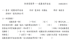 快樂閱讀單-威廉的洋娃娃〈陳璧霞〉.zip (31.50KB)
