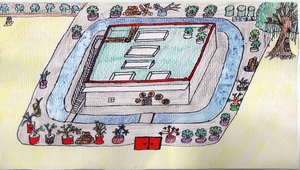 在多多生態園中,住著許多可愛的小動物和植物,這些小生物會在你意想不到的小地方,悠遊自在的生活、遊戲,所以請你張大眼睛、豎起耳朵,並且放輕腳步,你將會有很多驚奇的發現喔!下圖是生態館的平面圖,請將你所看到的生物位置,圈選標上編碼,如果知道名字請寫下來,如果不知道也沒關係,把他們描述出來、畫下來或照相下來,再持續觀察看看他們有什麼事情發生?