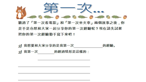 配合新的開始主題,經由繪本-第一次看電影、第一次坐火車引導學生分享屬於自己的第一次經驗,鼓勵學生把握每一次新的機會,勇於嘗試新的探索,期望學生能在新學期新氣象中,用滿懷希望的心,迎接新的開始。