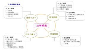本教學主題的設計,將透過寓言故事走進孩子的內心世界,除了培養孩子豐富的想像力之外,也希望引導孩子在面對疑難時,能用心思考、細心觀察,以培養解決問題的能力,同時了解分工合作的重要性,並懂得知恩惜福,感謝生活中為我們付出心力的每一個人。