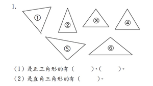 S-4-7 三角形:以邊與角的特徵認識特殊三角形並能作圖。如正三角形、等腰三角形、直角三角形、銳角三角形、鈍角三角形。