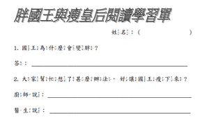 藉由文本探討胖國王與瘦皇后體重過重與過輕的原因,並引導小朋友討論及思考:「怎樣才健康」。