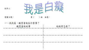 藉由共讀、討論、填寫學習單及分組發表,進行王淑芬作品「我是白癡」的閱讀教學活動。