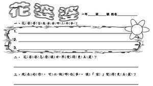閱讀完繪本-花婆婆之後,讓學生反思,可以仿效花婆婆的行為,為自己的家、班級做些什麼,並試圖描繪出心中的美麗世界。