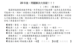 如果二、三十年後,你就是位富創造力的科學家、發明家,你會有什麼又新、又進步、又神奇的發明或方式來解決問題呢?
