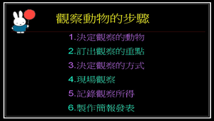 活潑的小動物總是吸引著小朋友的眼光,小動物可愛的模樣也讓他們樂於親近。基於這樣的特質,「牧場小小法布爾」利用學校建置的志學牧場,設計一系列的課程,讓學生從認識動物、親近動物開始,引發觀察的興趣,進而學習觀察、記錄與發表的能力。課程中先讓學生了解觀察的目的與「觀察的方法」,不至於在觀察中失去了方向,再讓學生以分組方式進行「合作學習」,小組透過討論選擇一個觀察主題,進行「主題探索」,利用數位相機記錄觀察影像,進行一段時間的觀察活動,並將觀察結果做成簡報,公開發表。 「牧場小小法布爾」的課程設計概念來自於「主題探索」學習模式與杜威(John Dewey)的「做中學」,主題探索以學生為主體,在主題活動中養成自動自發的興趣並能主動學習,於真實情境中透過「做中學」,經由觀察、實驗與思考來獲得知識與能力。 分工與合作是學習環境中重要的一環,本課程採取小組「合作學習」的方式,小組成員依不同能力與興趣,採取分工與合作方式來完成學習活動,不但可以增進學習效果,更可以同時達到增進人際互動及情意方面的學習。 觀察需有方法,由於本課程中觀察對象是動物,觀察者是小學生,所以選擇適合的觀察方法顯得很重要。考慮小學生的年齡與特質,所以在課程設計中先帶入昆蟲專家法布爾兩個不同觀察方式的小故事,再帶出兩種不同的觀察方法--「實驗觀察法」與「非參與性觀察法」(即本課程中所稱的靜態觀察),讓學生依據觀察目的選擇適合的方法,教師並在觀察過程中協助學生順利進行活動。 工欲善其事,必先利其器,有效的學習需選擇有效的工具,為了收集即時的資料與影像,數位相機是不可或缺的觀察工具,由於任教學校可提供學生用數位相機,所以數位相機成了學生學習的利器。 四年級有兩班,兩班導師因長期共同設計課程,培養出絕佳默契,經討論後決定採取「協同教學」模式,合班分組上課,由甲班導師進行主課程,乙班導師協助部份課程,期望經由協同方式讓課程達到最大的效益。 課程活動目標: (一)透過討論了解觀察目的,找出小組的觀察動機。 (二)透過討論了解觀察方法,擬訂小組的主題觀察活動計劃。 (三)透過實作學會數位相機使用方法。 (四)透過小組合作,使用輔助工具,在真實情境中進行一段時間的動物觀察與記錄。 (五)透過小組合作,完成一份觀察簡報,並透過簡報發表,學習自我省察及表達能力。