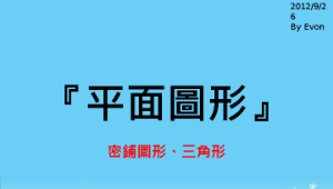 藉由「密鋪圖形」的組成性質來引發學生對平面圖形的興趣, 從日常生活中所見的事物, 繼而發現圖形的特性, 接著利用「密鋪圖形」的特性來複習角度及三角形的概念, 讓學生能將圖形與角度做結合, 並發現其中不可密分之關係。