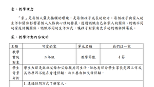 「家」是每個人最先接觸的環境,是每個孩子成長的地方。每個孩子與家人的生活和關係影響著個人人格與心理的發展。透過認識自己與家人的關係、認識不同的家庭結構關係、認識不同的生活方式,讓孩子對家有更多的認識與歸屬感。