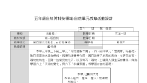 本教案內容承接三下「水的溶解作用」、「雲雨霧」等基礎,進而探索流水具有侵蝕、搬運和堆積等作用,因而改變了地表的形貌,並研究岩石、礦物的特性,認識一些常見的化石,以及岩石、礦物、土壤與人類生活的關係。做為學習六上「天氣的變化」與六下「永續家園」等學習內容的基礎。