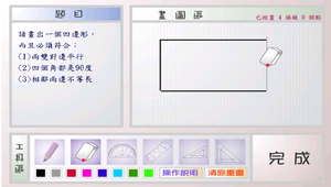這是一套建置在web上的電腦化幾何作圖系統。學生可透過電腦進行幾何作圖,系統會進行自動化評分及記錄成績,並給予說明。目前共有三題可供使用,未來仍可擴充。操作說明及評分規範如附件。