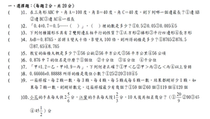 六年級上學期數學科第一次月考評量卷