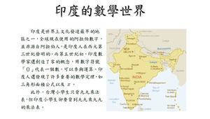 在學生已熟悉九九乘法表的背誦後,藉機介紹印度的乘法背誦是較國內的九九乘法還難,了解印度的數學實力是如此奠定起來的。