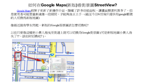 (可是新版地圖小黃人消失了?,新版的Google街景圖該如何切換呢? )。