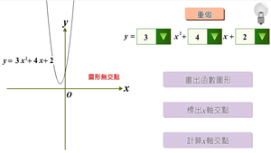藉由改變不同係數,觀察二次函數的圖形特徵,並瞭解二次函數圖形與x軸交點代數的意義