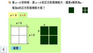 藉由平面空間上圖形的變化,呈現算幾不等式的幾何意義