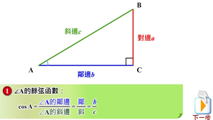 搭配圖文及動畫,呈現餘弦函數的邊角關係