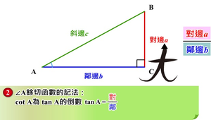 搭配圖文及動畫,呈現餘切函數的邊角關係