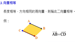 以簡報說明向量-零向量、逆向量與向量相等之定義