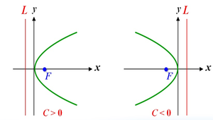 拋物線的焦點及準線,列出標準式;並觀察其開口