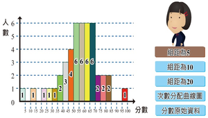 提供不同組距之次數分配圖,以供課堂上討論使用