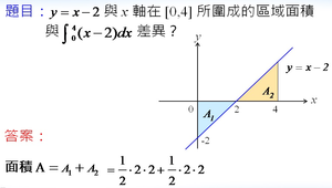 說明定積分正負值及其區域面積