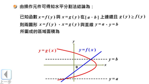 兩曲線間的區域面積:水平分割法