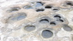 岩石本身凹陷處受鹽結晶的物理風化或有機質腐敗產生之酸性水溶蝕的化學風化所形成之圓形、橢圓形凹洞,有時海水亦會伴隨礫石滾動造成磨蝕作用,此即溶蝕盤,是壺穴的一種。