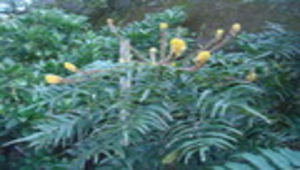 「阿里山十大功勞」是台灣特有種植物,生長環境為海拔兩千至三千公尺山區,常見於透光佳的向陽地,葉為奇數羽狀複葉,小葉革質、剛硬、具刺狀齒芽,每年約十月開花,花黃色,總狀花序,簇生,四、五月醬果成熟為暗紫色,是鳥類喜愛的食物之一。