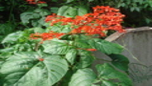 龍船花為台灣原生種的常綠灌木。因其在中國大陸地區,大多在端午龍舟競渡時開花,故被稱為「龍船花」。其植株高可達 1 公尺,小枝為四稜形;葉子碩大如桐,長 5~18 公分,為卵形至卵狀心形,葉緣為細鋸齒狀;花為大型圓錐花序,花冠為橙紅色,開花季節不穩定,可以從 3 月份一直開到 10 月底。果實為近乎球形的核果,成熟後為墨綠色。