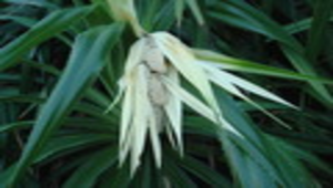 林投為常綠大型灌木,高度可達3~5公尺,通常長在砂質土壤的海邊,具有海岸防風定沙的功用。它的葉子細長,邊緣和中肋皆具有硬刺。林投雌雄異株且具有佛焰花序,花開在枝條的頂端。其果實外形像鳳梨,有一顆顆突出的果核,原為橄欖綠,在五六月間成熟後,顏色會逐漸轉為橘紅色;而熟成果實的內部種子可食用,味道香甜,口感與花生相似。