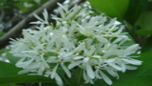 俗稱為六月雪,別名為烏金子、茶葉樹、千筋子。分布的地區有中國、日本、韓國及台灣。原產中國、韓國、日本。落葉喬木,樹幹略成通直狀,樹皮灰褐色,粗糙,枝條具開展性,小枝幼嫩時有毛,後變光滑。葉單生具長柄,呈倒卵形、橢圓形或長橢圓形,葉面深綠色而葉背灰綠色。花為白色聚繖花序,三至四月綻放時,一樹雪白搶盡風采,具芳香。核果成卵形,成熟時由綠色轉為藍黑色,內藏種子一粒。流蘇屬中至陽性植物,喜歡通風而溫暖多濕的環境。耐風及抗空氣污染力強。其嫩葉可製茶,樹幹的材質可供製造算盤子,製成的算盤珠子打起來聲音清脆無比。 此外,流蘇也是良好的庭園觀賞植物。