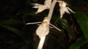 全株無葉綠素,具地下莖,寄生腐植土上。泛亞上鬚蘭根部與一般蘭花氣生根不同,具塊莖。開花時花序伸出地表。花序垂頭狀,逐漸變直,白色;花序軸上密佈花朵。