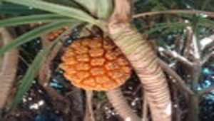 林投為常綠大型灌木,高度可達3~5公尺,通常長在砂質土壤的海邊,具有海岸防風定沙的功用。它的葉子細長,邊緣和中肋皆具有硬刺。林投雌雄異株且具有佛焰花序,花開在枝條的頂端。其果實外形像鳳梨,有一顆顆突出的果核,原為橄欖綠,在五六月間成熟後,顏色會逐漸轉為橘紅色;而熟成果實的內部種子可食用,味道香甜,口感與花生相似。