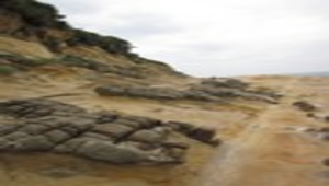 與球石同樣被認為是砂岩層中膠結緻密的結核或團塊,膠結物以方解石為主,抗風化強,因出露的形狀不規則,貌似薑而得名。
