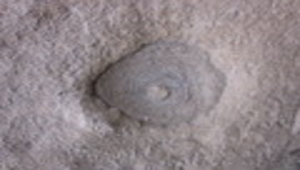 生痕化石為生物在未膠結的沉積物上活動所遺留下的痕跡,各類生痕化石組成的生痕化石相可指示該岩層沉積時的沉積環境。圖為覓食痕,是生物沿同心圓狀移動覓食的痕跡。