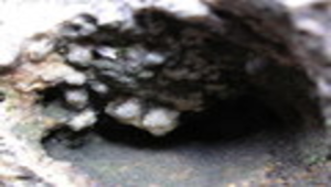 水體流經岩石的孔洞使水中溶解的HCO3-與Ca2 沉澱為CaCO3(碳酸鈣)形成粒狀或鮞狀的方解石結晶。